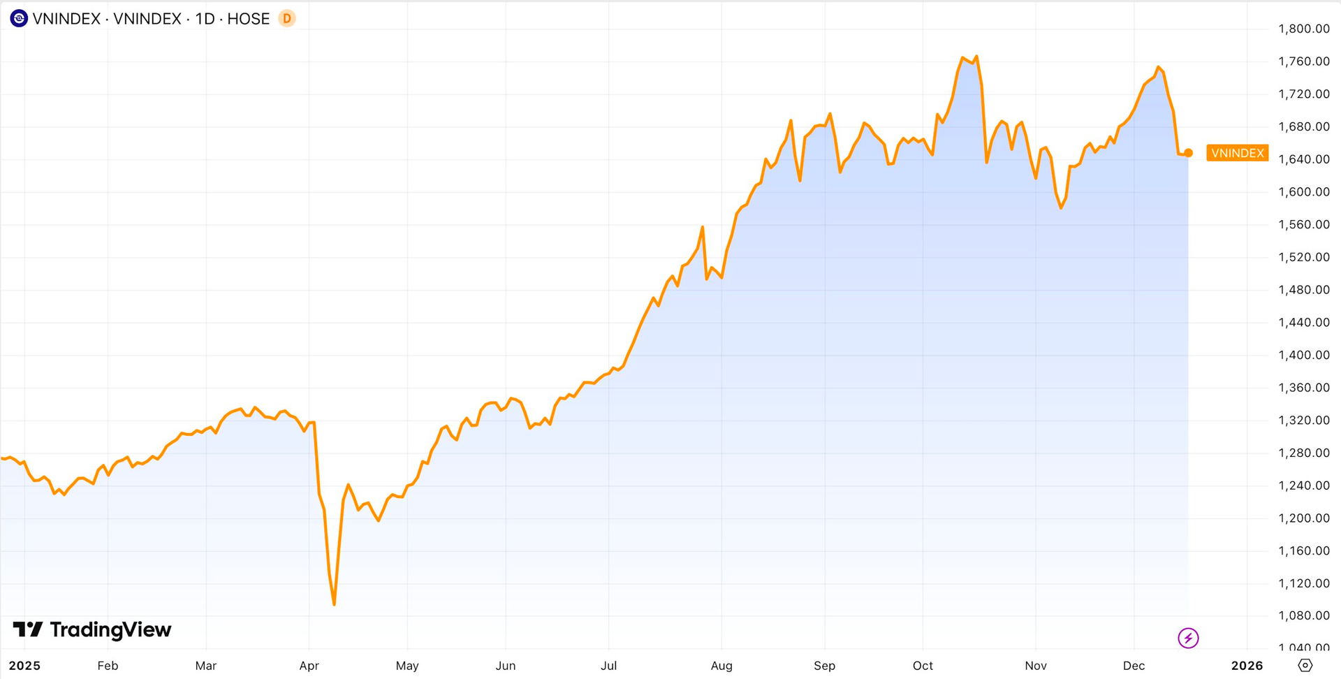 “Thông thường VN-Index nếu điều chỉnh trước tháng 12, tháng 12 hay là điểm tạo vùng đáy cho sóng phục hồi đến hết quý 1 sang năm. Vì vậy, kỳ vọng dòng tiền sẽ có lan tỏa hơn trong thời gian tới, đặc biệt trong bối cảnh câu chuyện tăng trưởng kinh tế năm 2026 kỳ vọng sẽ tạo chất xúc tác chung cho toàn thị trường”, chuyên gia Mirae Asset nhận định.