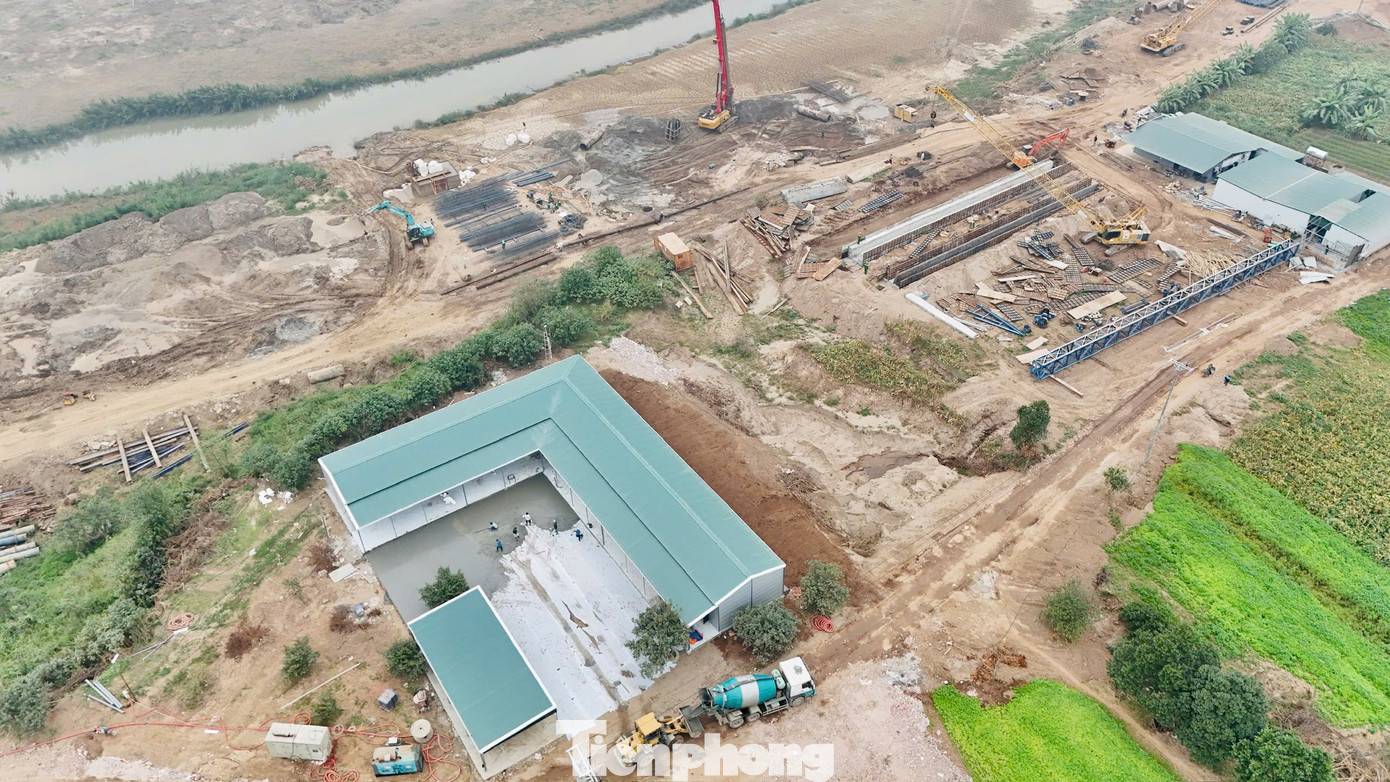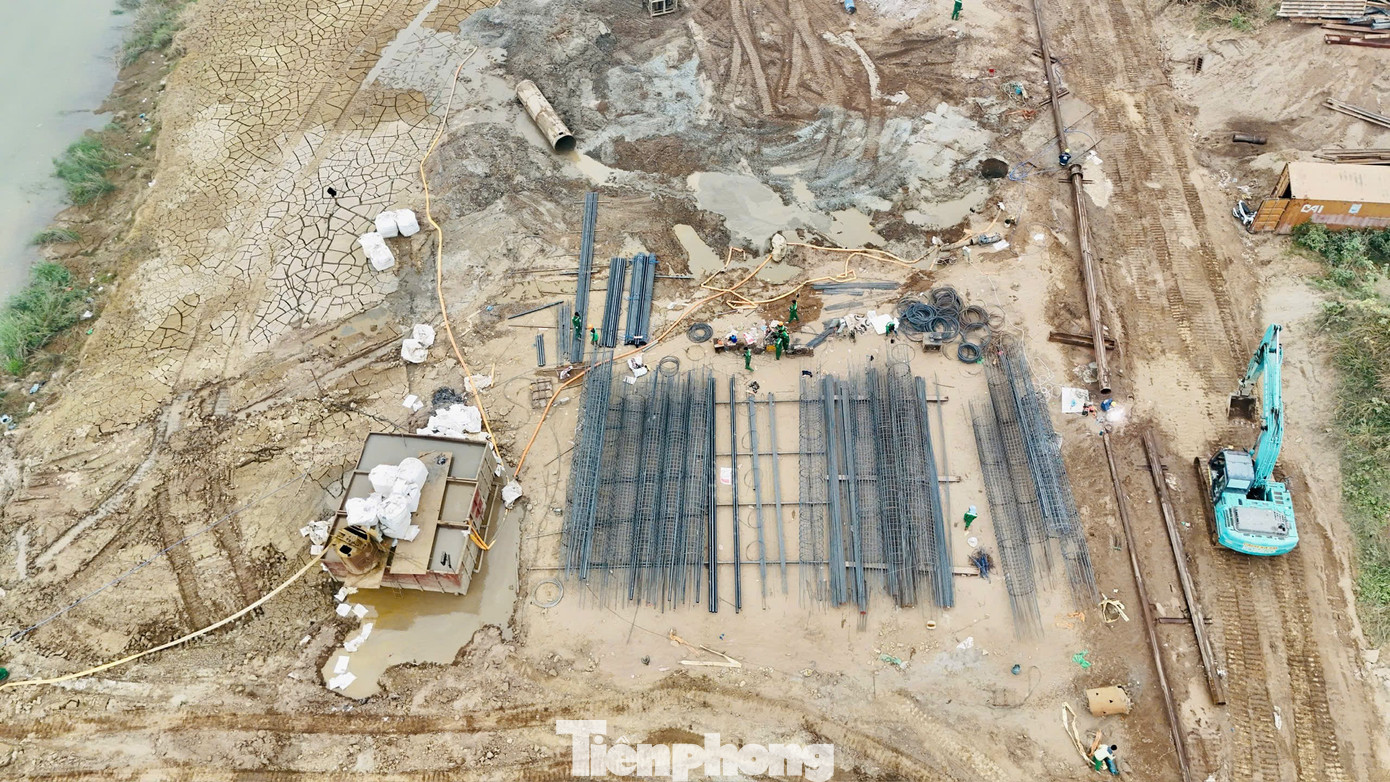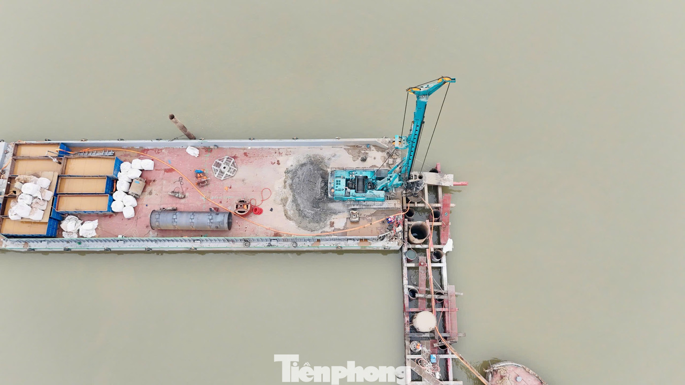 Phía bờ Nam, đơn vị đang chuẩn bị dây chuyền để khoan cọc D1200 thuộc các trụ P19 đến trụ P21. Dự kiến, đơn vị thi công sẽ hoàn thành kết cấu phần dưới trong tháng 12-2026; hoàn thành kết cấu phần trên trong quý II-2027.